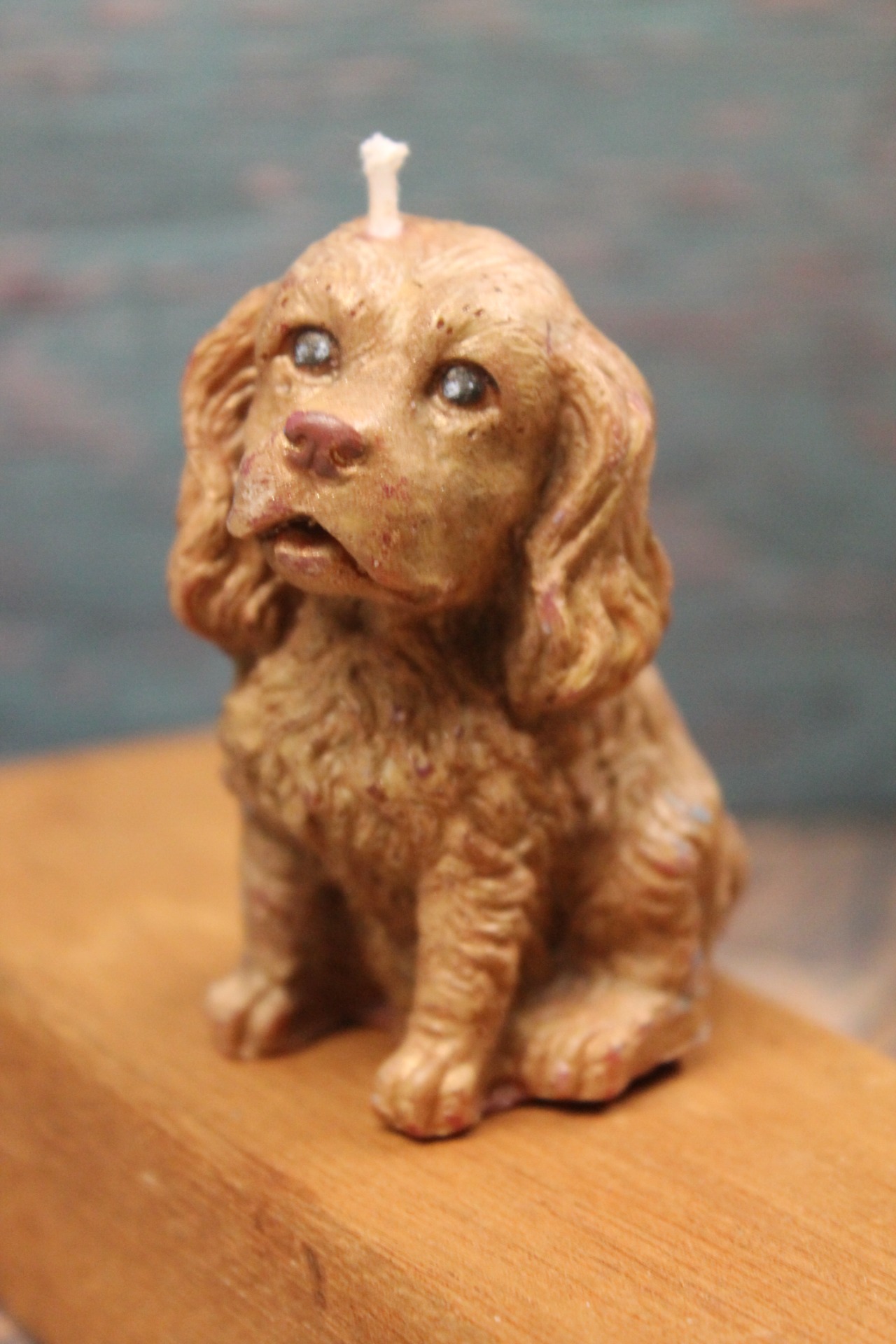 Ljuset är skapat med stor omsorg för att fånga rasens karaktäristiska drag – från de lockiga, mjuka öronen till den pigga och trofasta blicken. Den gyllene, handmålade finishen ger ljuset ett livfullt djup och en varm lyster som gör det till ett vackert blickfång, oavsett om det är tänt eller står som prydnad.