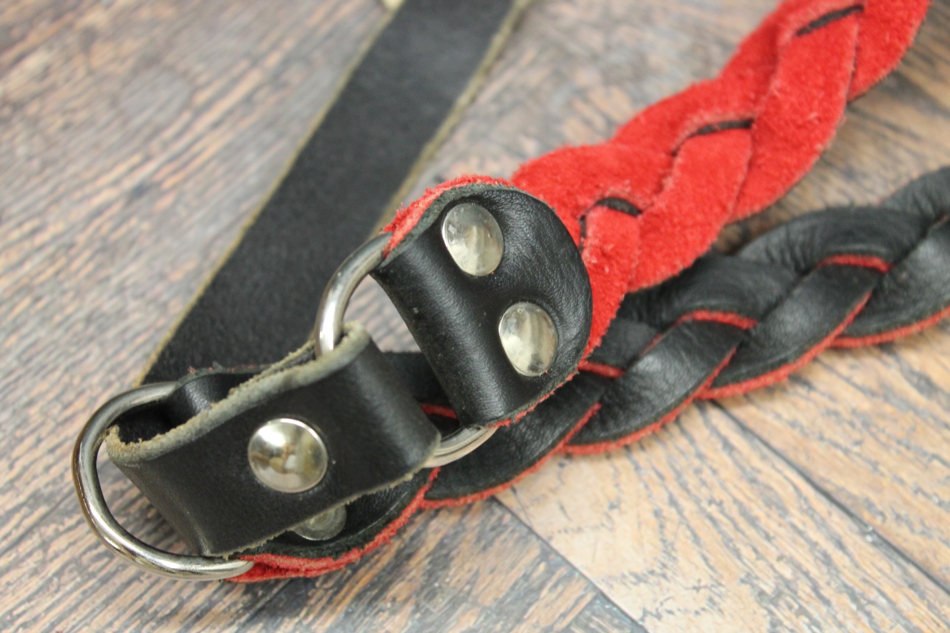 Robust konstruktion: Läderändarna är säkrade med dubbla nitar i rostfri finish för att tåla kraftiga ryck och rörelser.