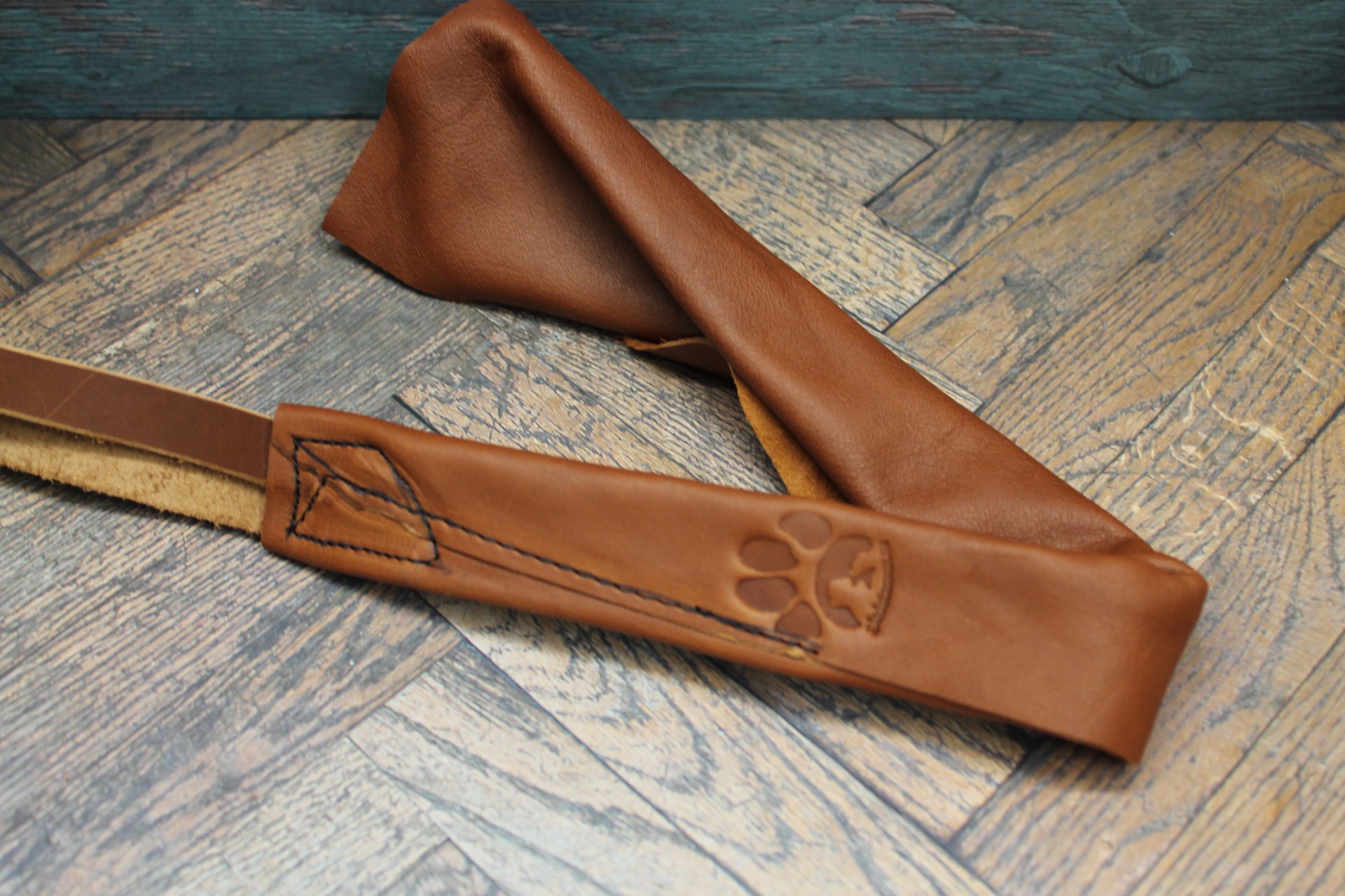 Det naturliga lädret ger ett bra grepp, hög slitstyrka och en behaglig känsla för hundens mun.