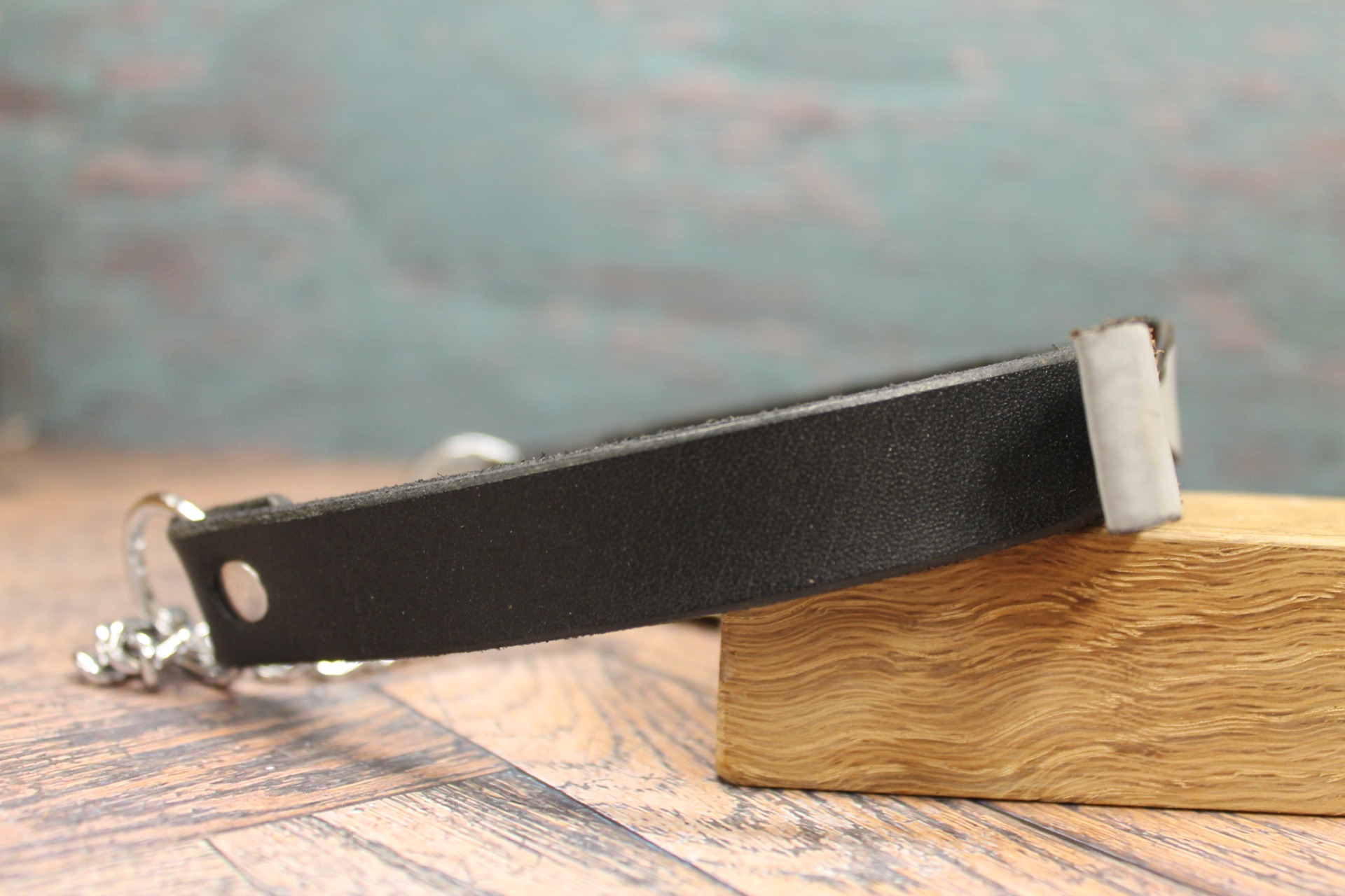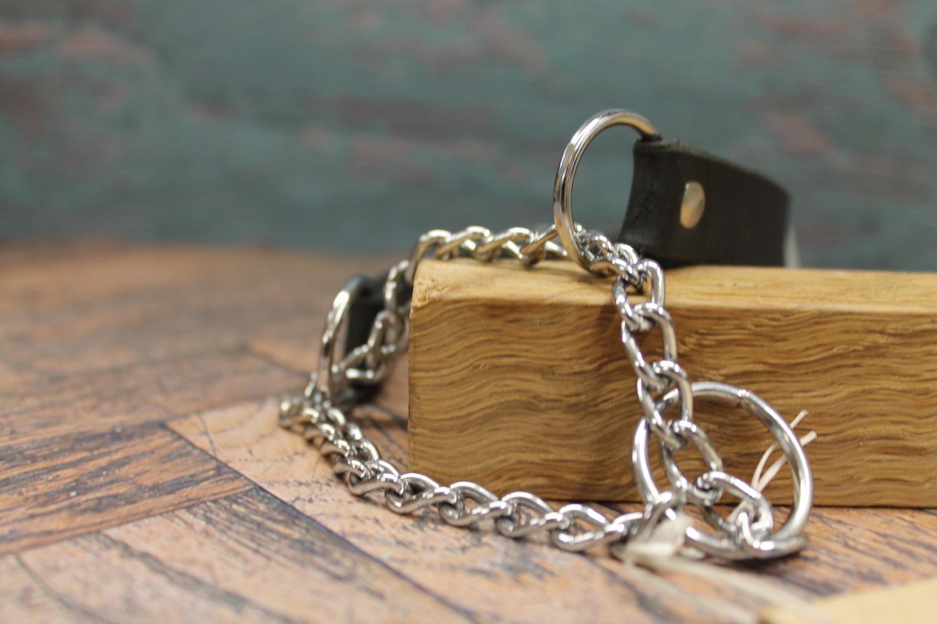 • Slitstark hårdvara: Utrustat med en robust halvstrypskedja och rejäla nitar i kromfinish för både säkerhet och en tuff attityd.