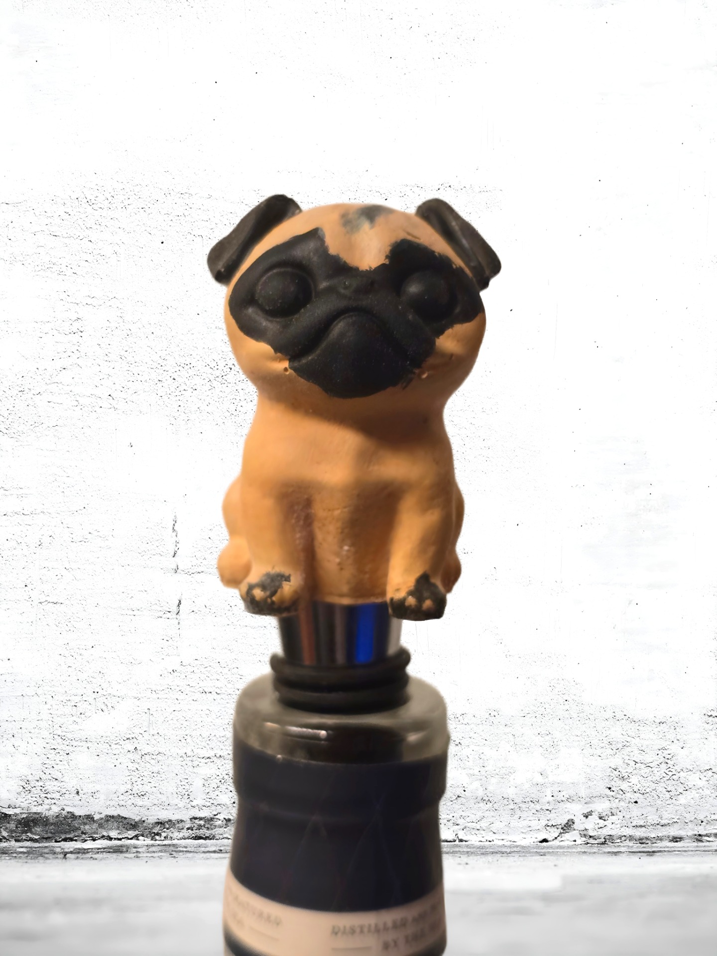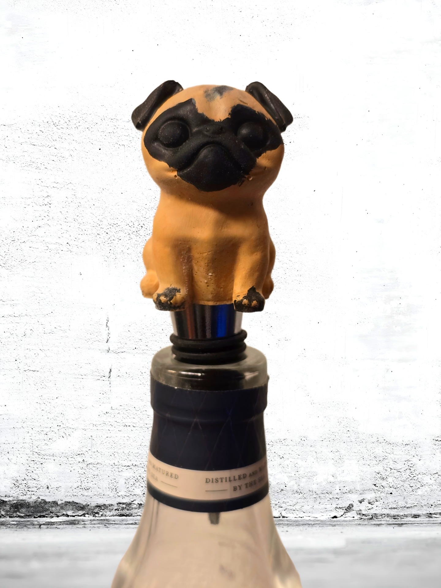 Möt Sir Pog-a-lot, mopsen som tog sitt uppdrag som flaskväktare på största allvar. Med en blick som ser rakt in i din själ (eller åtminstone ner i botten på glaset) ser han till att inga dyrbara droppar går till spillo.