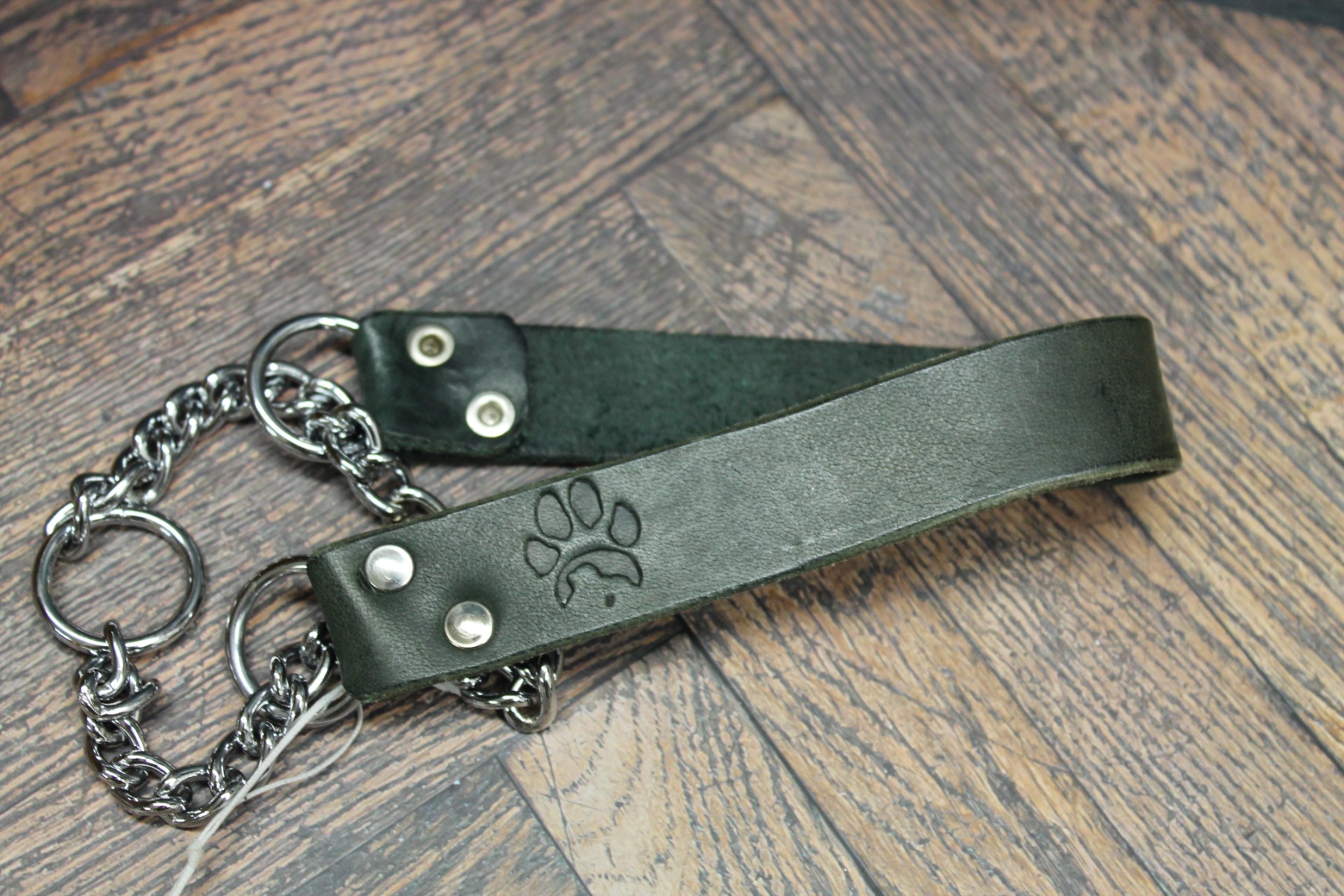 Halsbandet är tillverkat av slitstarkt svart läder och ger en säker, bekväm passform för din hund.